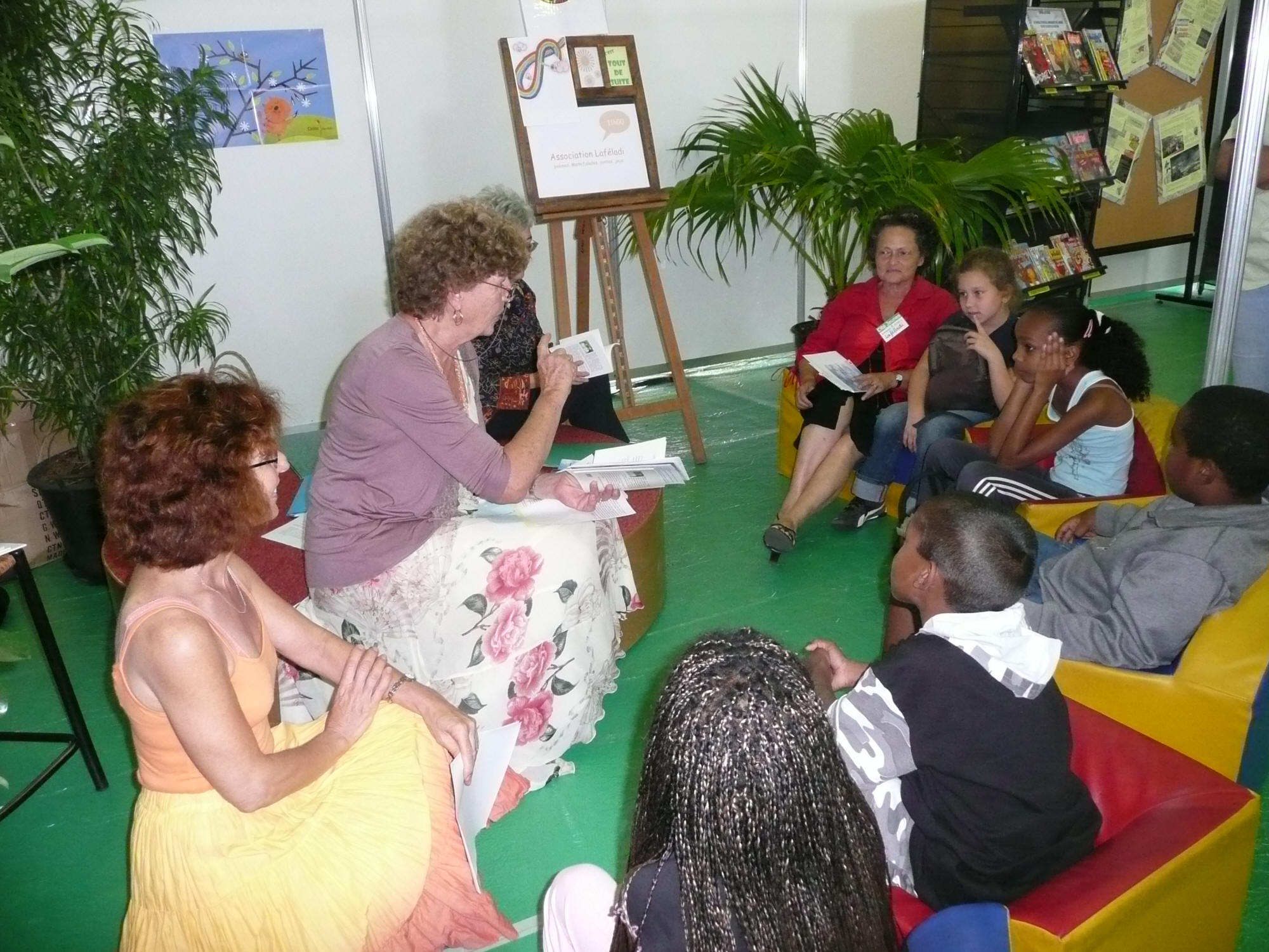 11h : Le programme, qui s'est globalement déroulé comme prévu, semble avoir été apprécié des enfants qui ont non seulement écouté avec attention les textes dits ou lus, mais aussi participé en lisant à leur tour des extraits choisis par les quatre fées de l'association.